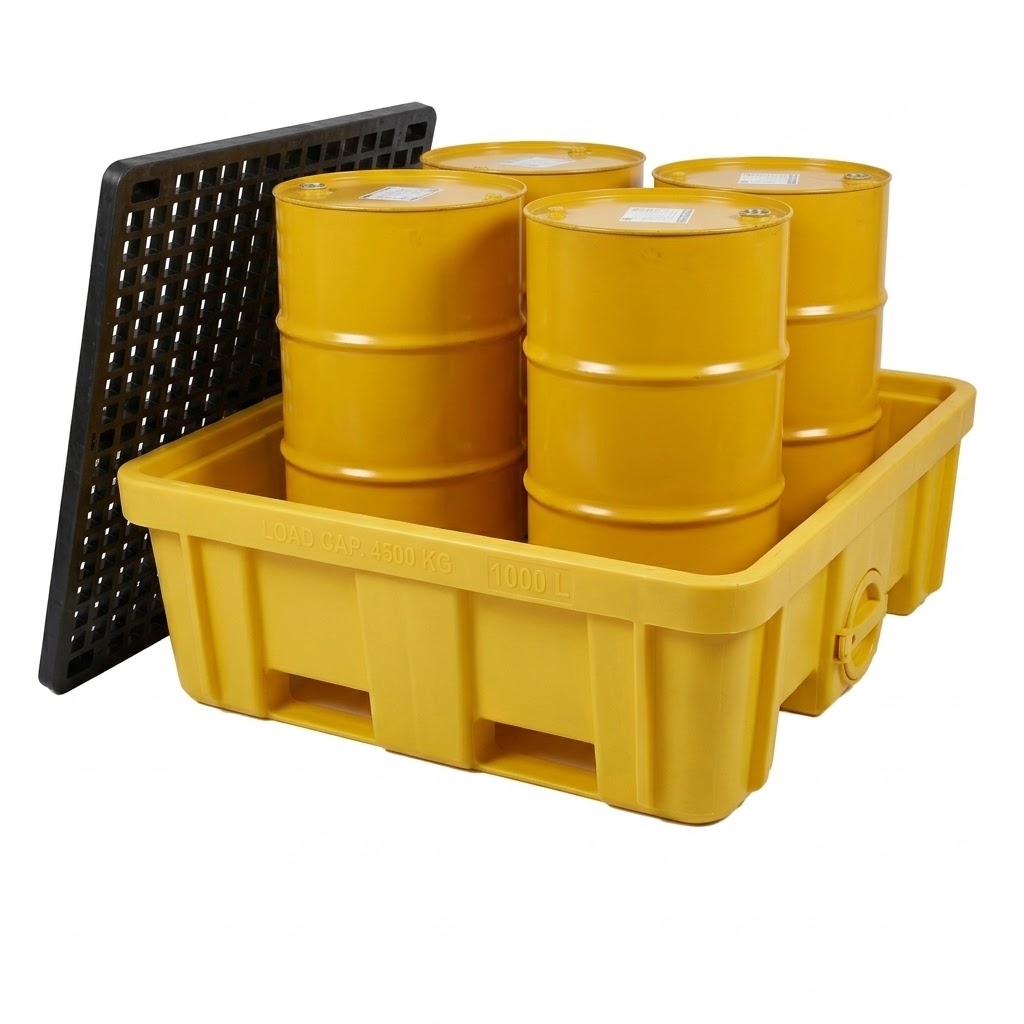 La palette de rétention 1000 L permet de sécuriser efficacement les installations de stockage de liquides à grande capacité tout en garantissant la protection de l’environnement.